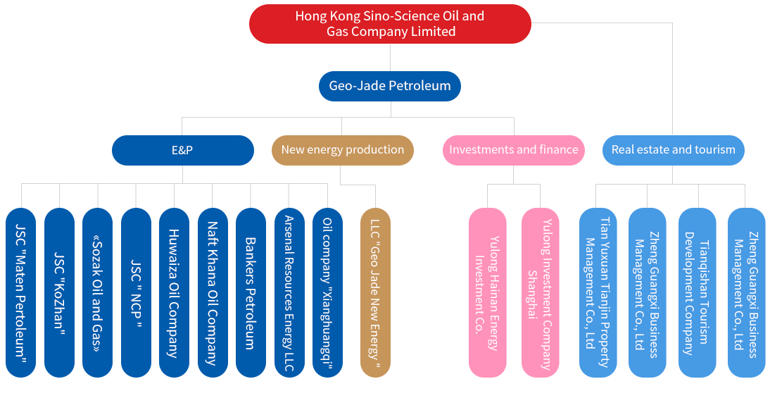 Geo-Jade Petroleum LLC owns four oil and gas assets in the Republic of Kazakhstan, including the oil fields of Maten Petroleum JSC, KoZhaN JSC and NCP JSC, located in the Atyrau and Aktobe regions of the Republic of Kazakhstan, as well as the fields of Sozak Oil and Gas, located in the Turkestan and Kyzylorda regions.
